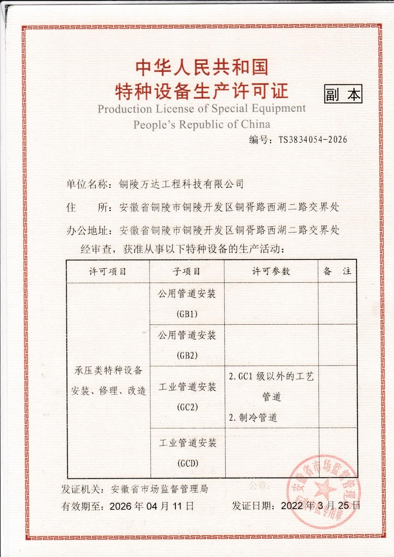 公用管道設(shè)備生產(chǎn)許可證